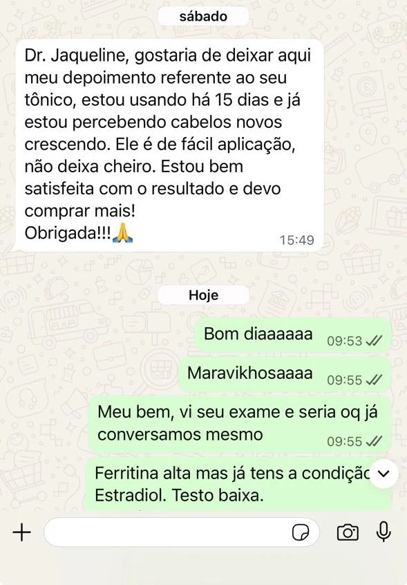 Os primeiros resultados costumam aparecer entre 6 e 8 semanas, como redução da queda e melhora no fortalecimento dos fios.